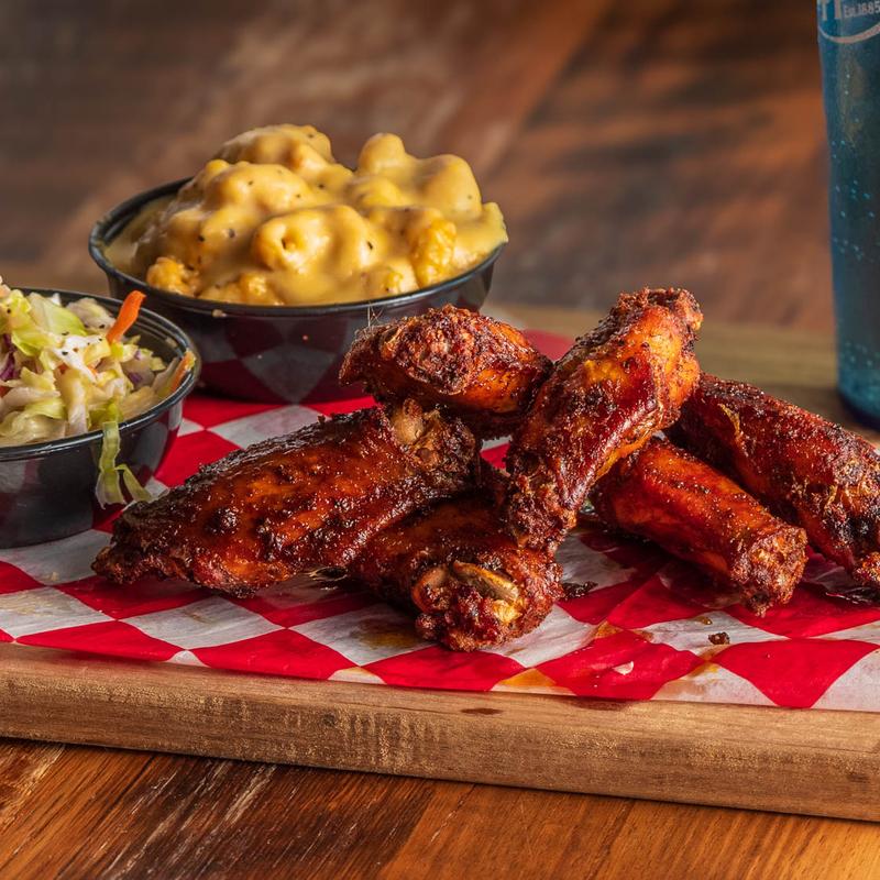 1/4 lb of slow smoked brisket, ribs, pulled pork, sausage, and wings.